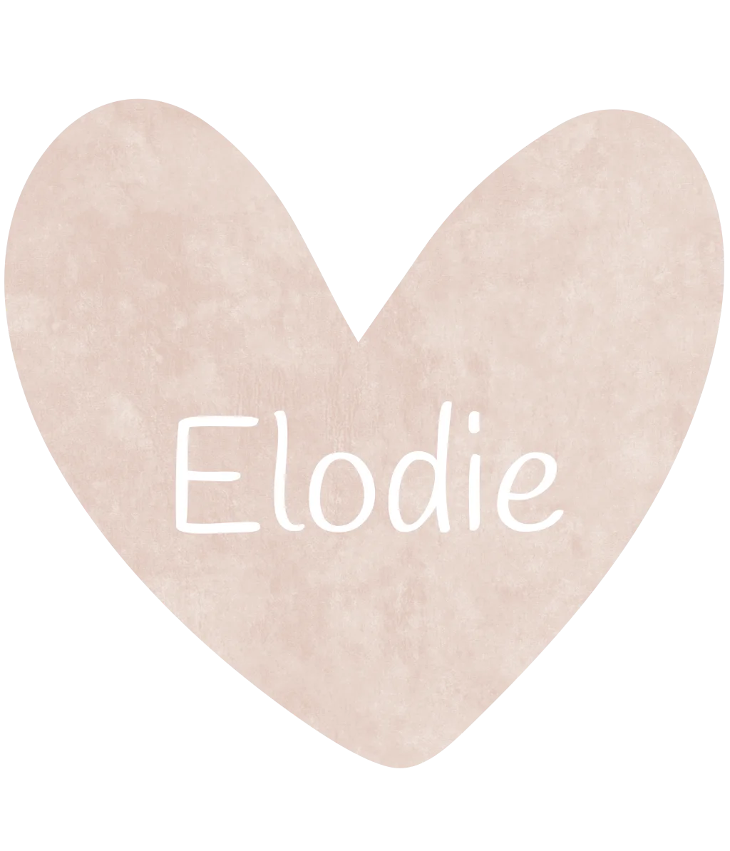 Dit te schattige labeltje in hartjes vorm kun je als extra aan je kaartje hangen. Het label heeft een velvet look achtergrond in zacht roze kleur met de naam van je kindje, bijvoorbeeld Elodie. Je past het ontwerp van dit label zelf eenvoudig van kleur en opdruk aan.