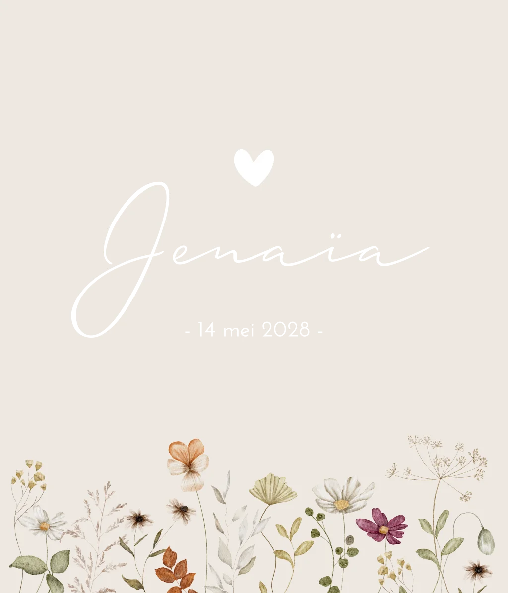 Een lief en romantisch label die je ook als mini geboortekaartje kunt gebruiken als je voor de klas staat. Zo krijgt ieder kindje een eigen mini geboortekaartje van juf haar baby. Dit ontwerp bevat allerlei waterverf bloemetjes in diverse kleuren. Op labeltje Jenaïa staat de naam in koperfolie. Wil je graag iets aanpassen? Neem dan een kijkje in onze editor voor de vele opties! De prijs is €0,30 per stuk, met een minimale afname van 30 stuks. Voor labels met foliedruk betaal je €0,50 per stuk.