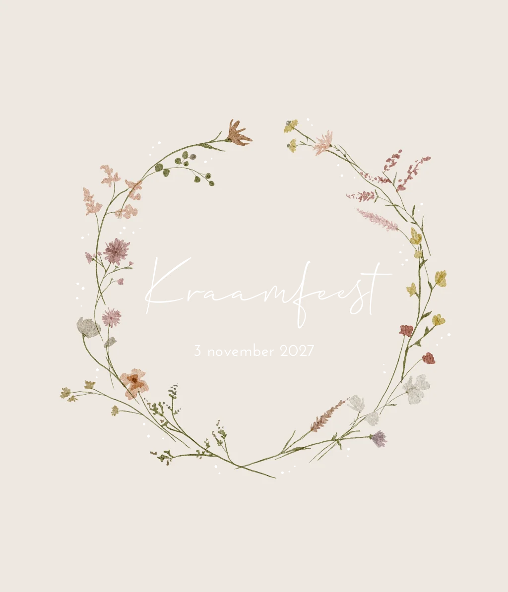 Een lieve en romantische uitnodiging voor een kraamfeest/ babyborrel, met een watercolor krans. Op label Manoah staat de naam en een paar stipjes rondom de krans in koperfolie, dit zorgt voor een chique uitstraling. Wil je graag iets aanpassen? Neem dan een kijkje in onze editor voor de vele opties!