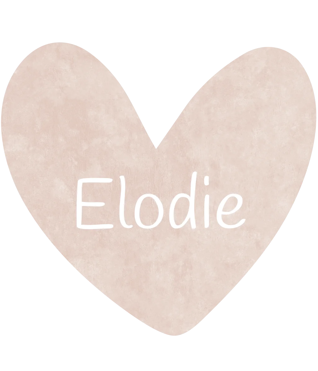 Dit te schattige labeltje in hartjes vorm kun je als extra aan je kaartje hangen. Het label heeft een velvet look achtergrond in zacht roze kleur met de naam van je kindje, bijvoorbeeld Elodie. Je past het ontwerp van dit label zelf eenvoudig van kleur en opdruk aan.