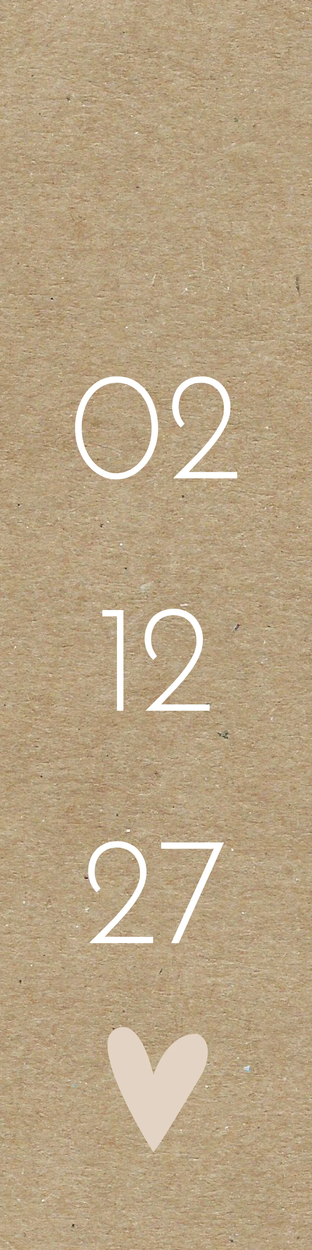 Bruin kraft kleurig labeltje in de maat 'small' die je kunt gebruiken om de datum of een tekstje op te zetten voor bij je geboortekaartje. Deze kun je dan middels een paperclip aan de kaart bevestigen of met een touwtje om de kaart heen kunt knopen. Je past het label helemaal zelf aan in de editor!