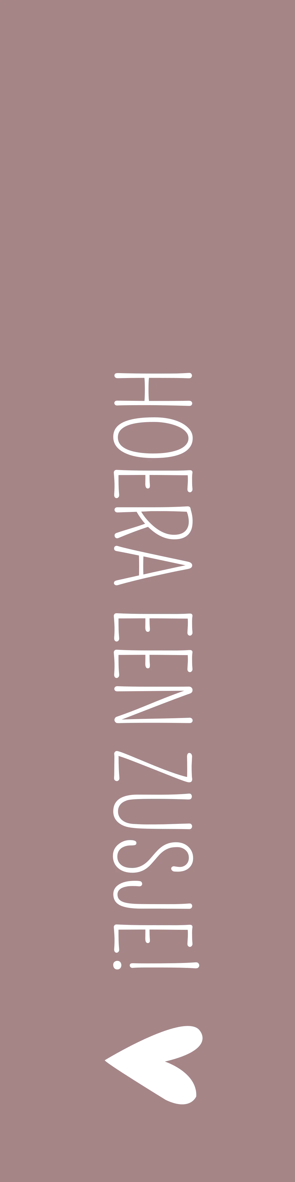 Een oud roze/ lila label met rosefolie kleurige tekst, 'Hoera een zusje!'. Dit label matched qua kleur perfect bij kaartje Niva. Maar je kunt de kleur van het label eenvoudig aanpassen zodat het label ook bij jouw anders kleurige kaartje past. Heb je onze hulp nodig? Wij passen kosteloos de kleur voor je aan!