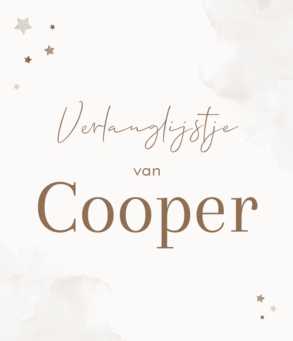 Schattig beige cadeautip/verlanglijstje label in waterverf stijl passend bij kaartje Cooper of Skye. Je past het label eenvoudig zelf aan in de editor. De prijs is €0,30 per stuk, met een minimale afname van 30 stuks. Voor labels met foliedruk betaal je €0,50 per stuk.