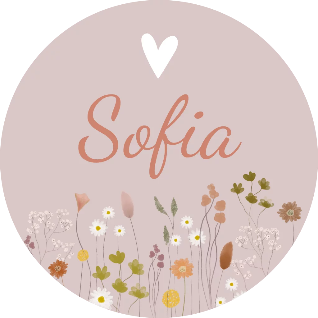 Roze stickertje met bloemen om de enveloppen van de geboortekaartjes mee dicht te plakken of om te plakken op je geboortebedankjes/ doopsuikertjes. Je kunt de stickers helemaal zelf aanpassen in onze editor! De diameter van dit ontwerp is 4cm. Deze stickers gaan per vel. Één vel van 24 stickers is € 7,50.