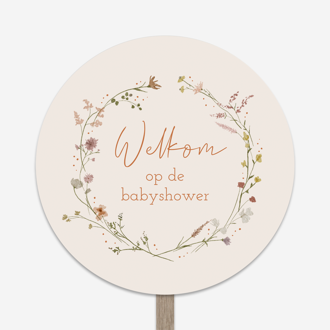 Welkomstbord Babyshower Feest Bloemenkrans Beige