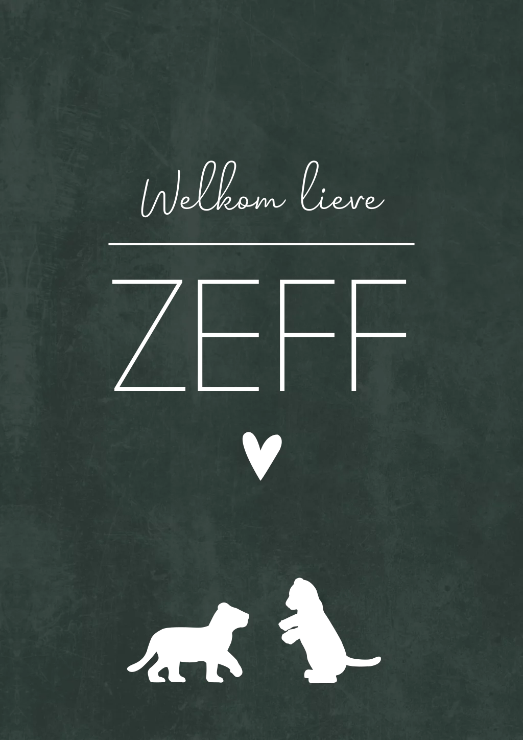Een stoere poster voor op een stoere jongenskamer. Poster Zeff heeft twee leeuwenwelpjes in goudfolie. Wil je graag iets aanpassen? Neem dan een kijkje in de editor voor alle opties!