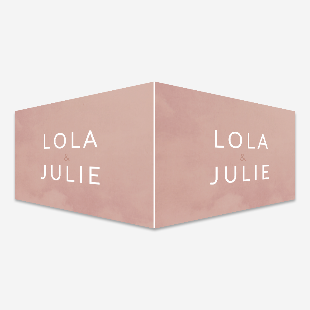 Een oudroze gewolkt geboortebord voor op het raam met een modern en hippe look. Raambord Lola en Julie is afgewerkt met witte letters zodat de namen eruit springen. Je past het geboorte raambord eenvoudig en snel aan in onze online editor. Tip: leuk om te geven als kraamcadeau!