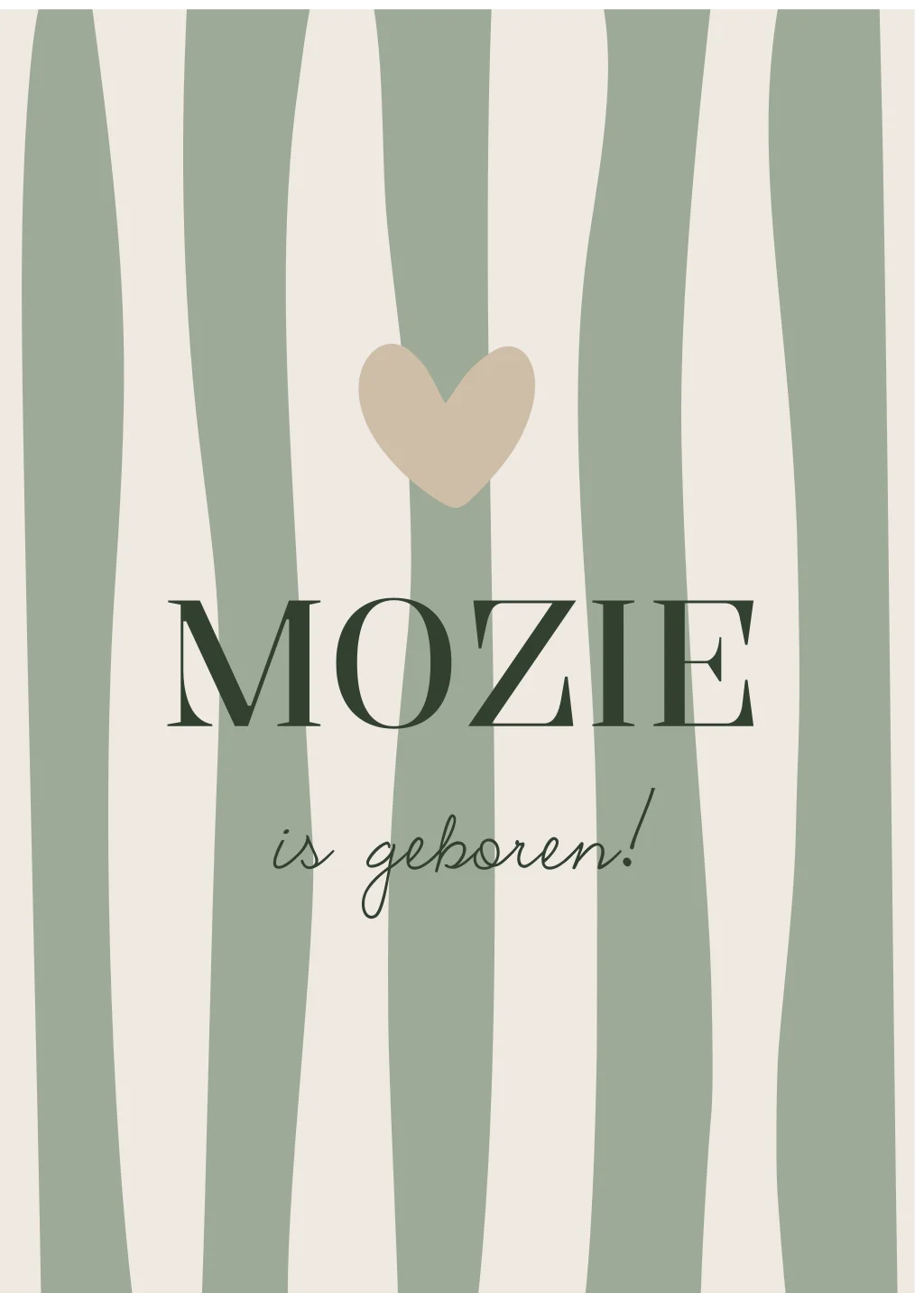 Een prachtig geboortebord Mozie voor op het raam beige/groen/ donkergroen gestreept met een hartje. Je kunt alle kleuren eenvoudig aanpassen naar je eigen kleurwensen. Heb je onze hulp erbij nodig? Laat het gerust weten!