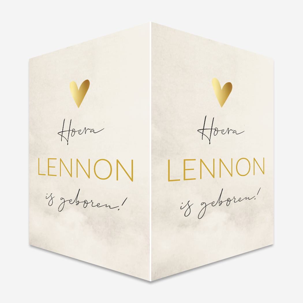 Beige gewolkt raambord Lennon met het hartje en de naam in goudkleur. Let op: de raamborden kunnen niet met goudfolie bedrukt worden!