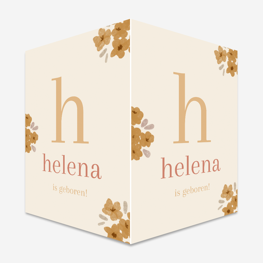 Een lief geboorteraambord met bloemen. Op raambord Helena staat een initiaal op de voorzijde en grote bloemen. Er is gebruik gemaakt van gele en bruin tinten wat het raambord ook perfect maakt voor de herfst. Een perfecte mix tussen stijlvol en speels! Wil je graag iets aanpassen? Neem dan een kijkje in onze editor voor alle opties.