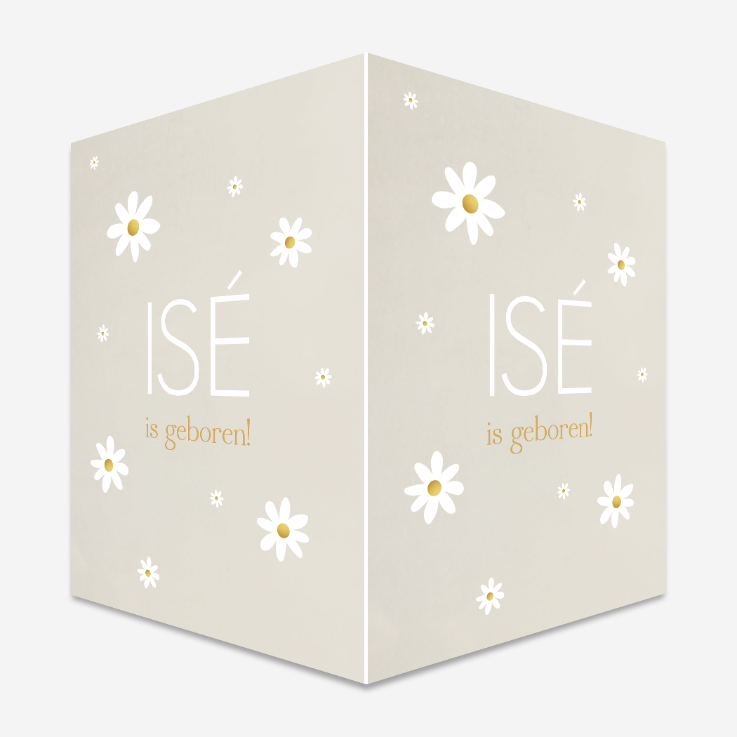 Beige geboorte raambord met allemaal madeliefjes in groot en klein formaat. Je past geboortebord Isé gemakkelijk en snel aan in onze online editor. Heb je hulp nodig? App of mail ons gerust!