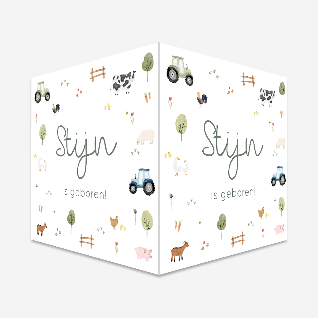 Een vrolijk raambord met kleine illustraties van diertjes zoals een schaap, varken, koe, geit, gans, kip, haan, bij en kuikens. Ook zie je illustraties die horen bij het boerderij/platteland leven zoals een trekker/tractor en groente, bloemen en natuur. Raambord Stijn is daarom perfect voor de dierenliefhebbers en de boeren onder ons! Wil je graag iets aanpassen aan het bord? Neem dan een kijkje in onze editor voor de vele opties.
