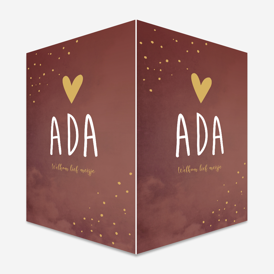 Een warm geboortekaartje in een bordeaux rode/ roze kleur. De stipjes geven raambord Ada een speelse uitstraling.