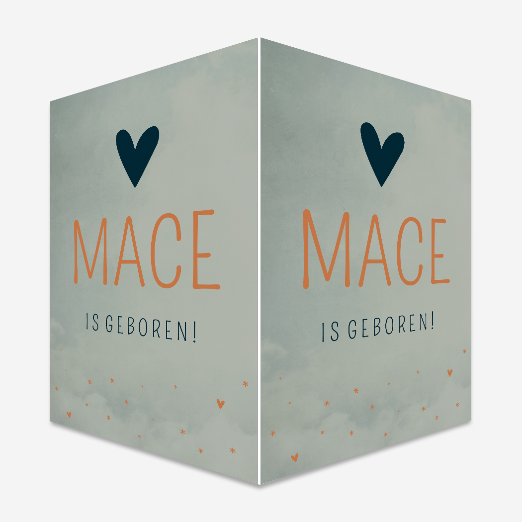 Een gewolkt oudgroen raambord in de kleur Early Dew. Door de hartjes en sterretjes in combinatie met het strakke lettertype is raambord Mace lieflijk met een stoere touch.