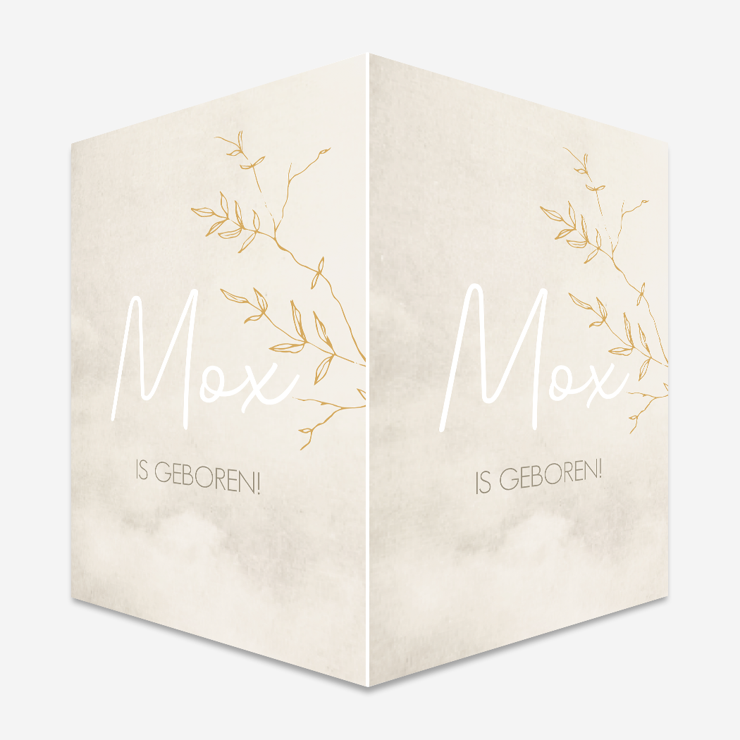 Beige/ crème gewolkt raambord Mox met goudkleurige botanische takjes. Pas het raambord eenvoudig naar eigen wens aan in de editor.