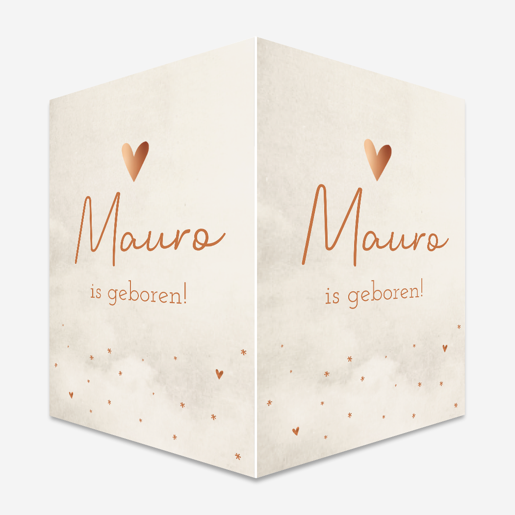 Beige/ crème gewolkt raambord Mauro met koperkleurige hartjes en sterretjes: