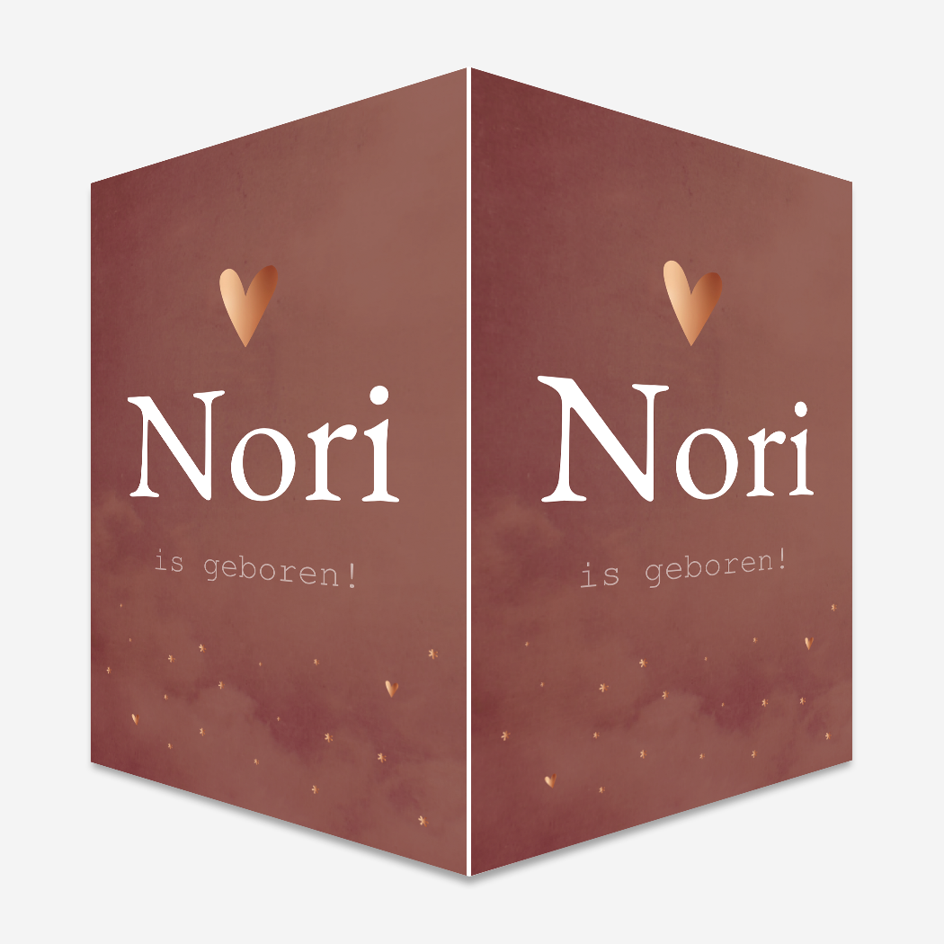 Een romantisch raambord in een roestbruine kleur, met kleine hartjes en sterretjes.