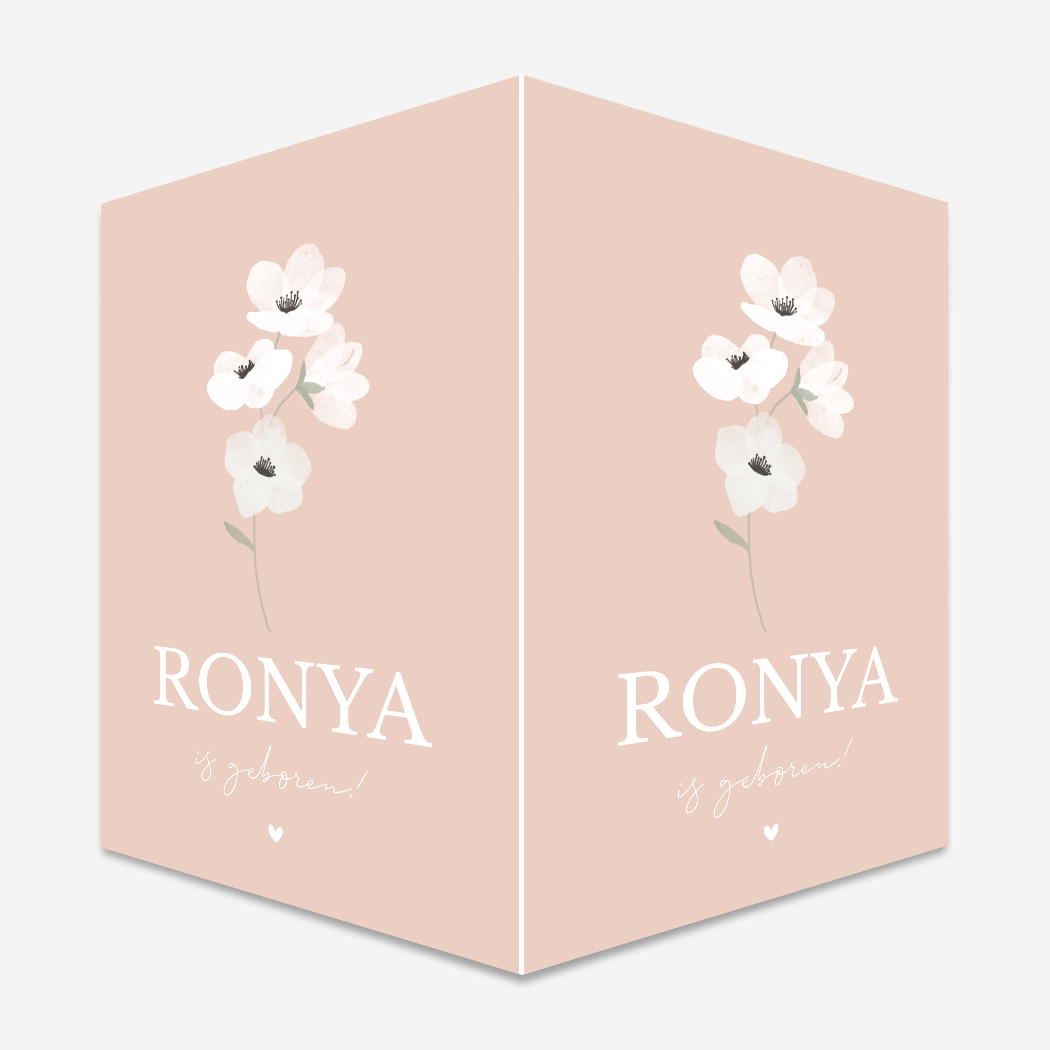 Een romantisch raambord in een zacht roze kleur. Op raambord Ronya staan witte bloemen in waterverf stijl. Wil je graag wat aanpassen? Neem dan een kijkje in onze editor voor alle opties.