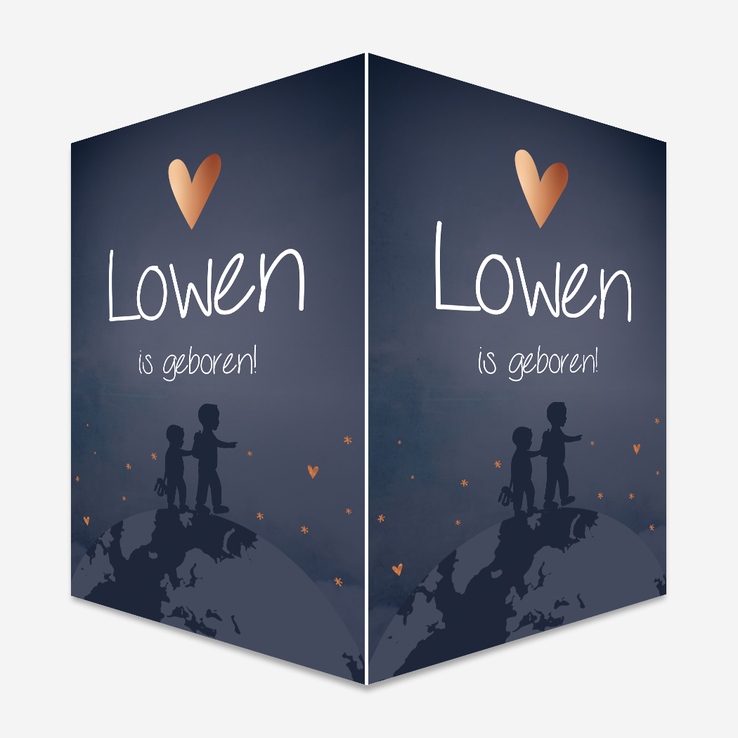 Een blauw gewolkt raambord met een illustratie van twee broertjes die over de wereldbol lopen. Wil je liever op raambord Lowen een andere illustratie? Neem dan een kijkje in onze editor voor alle opties.