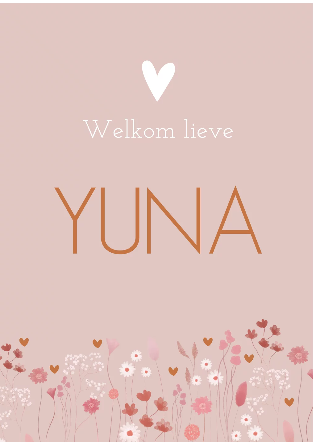 Een raambord met een getekend bloemenveld met droogbloemen. Een romantisch roze raambord om de geboorte van jouw/jullie meisje aan te kondigen. Pas het raambord eenvoudig naar eigen wens aan in de editor.