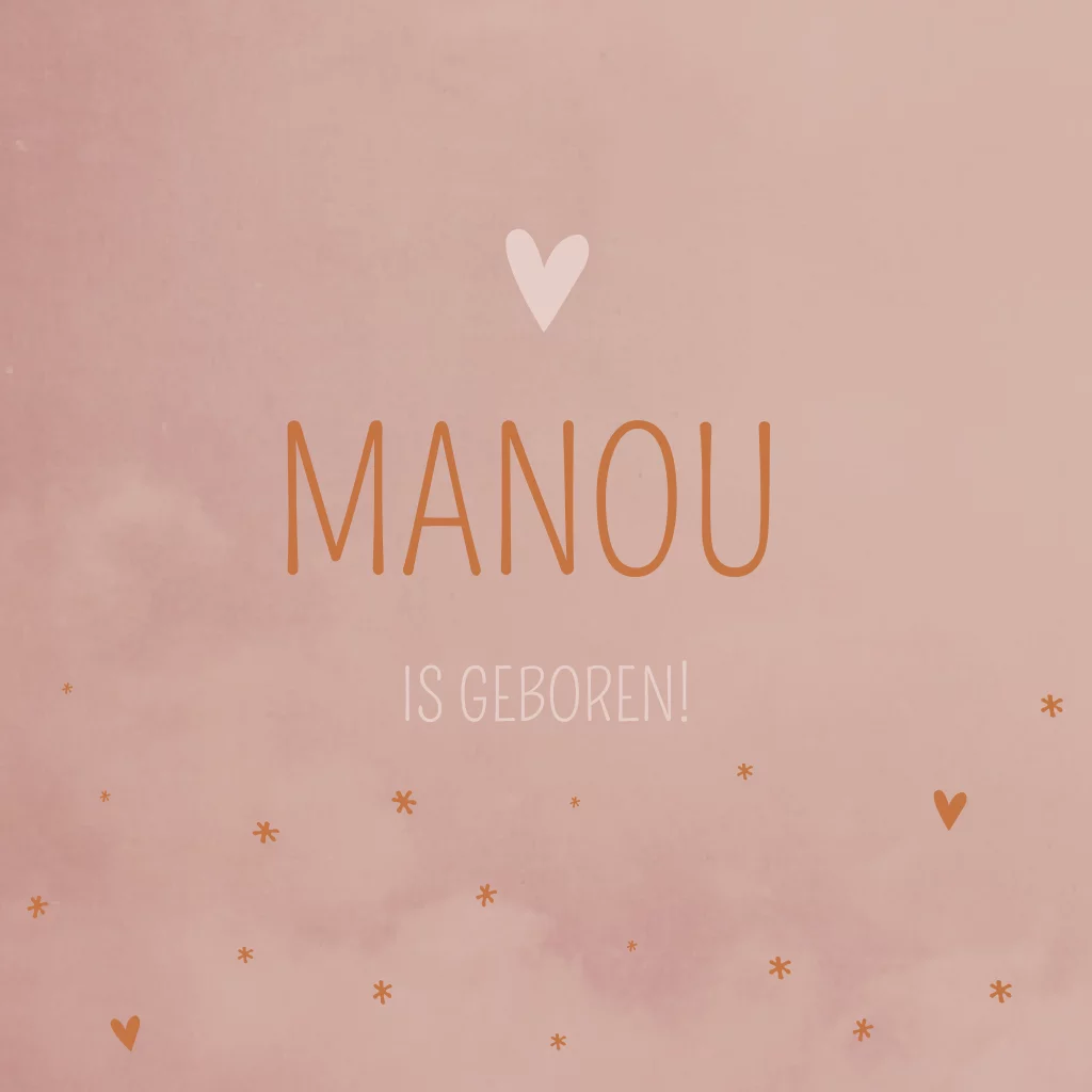 Roze gewolkt bord voor in de tuin. Tuinbord Manou is naar wens aan te passen in de editor. Tip: leuk om te geven als kraamcadeau!
