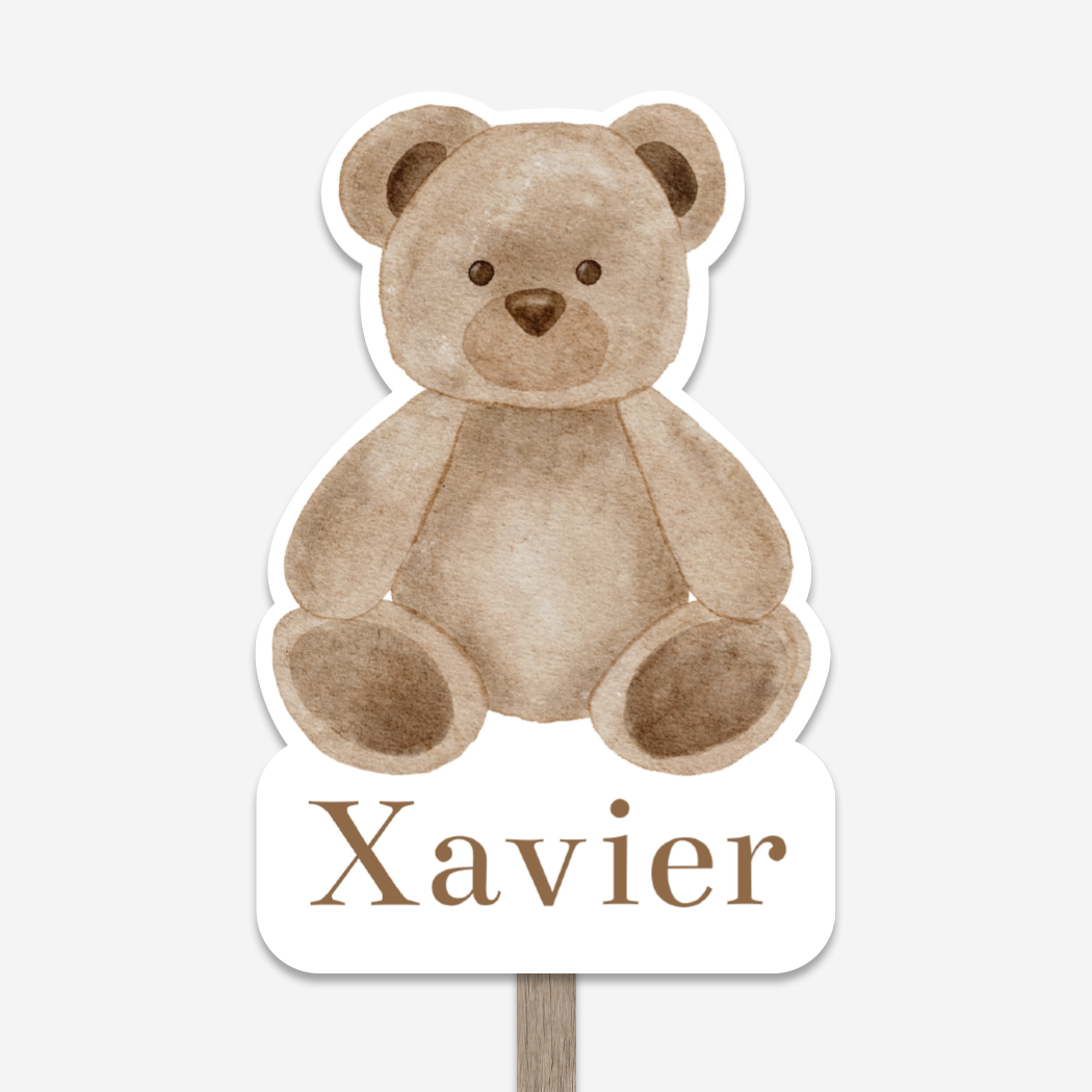 Met dit tuinbord in de vorm van een teddy beer maak je in de hele straat bekend dat er een kindje is geboren! Het geboortebord Xavier is gemakkelijk aan te passen in de editor.
