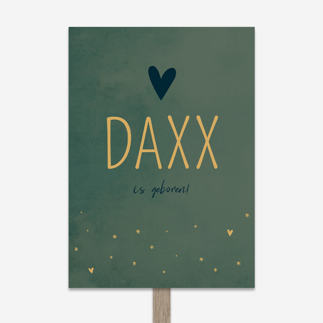 Stoer donkergroen bord voor in de tuin. Bord Daxx bevat hartjes en sterretjes. Je past het ontwerp eenvoudig en snel aan in onze online editor.