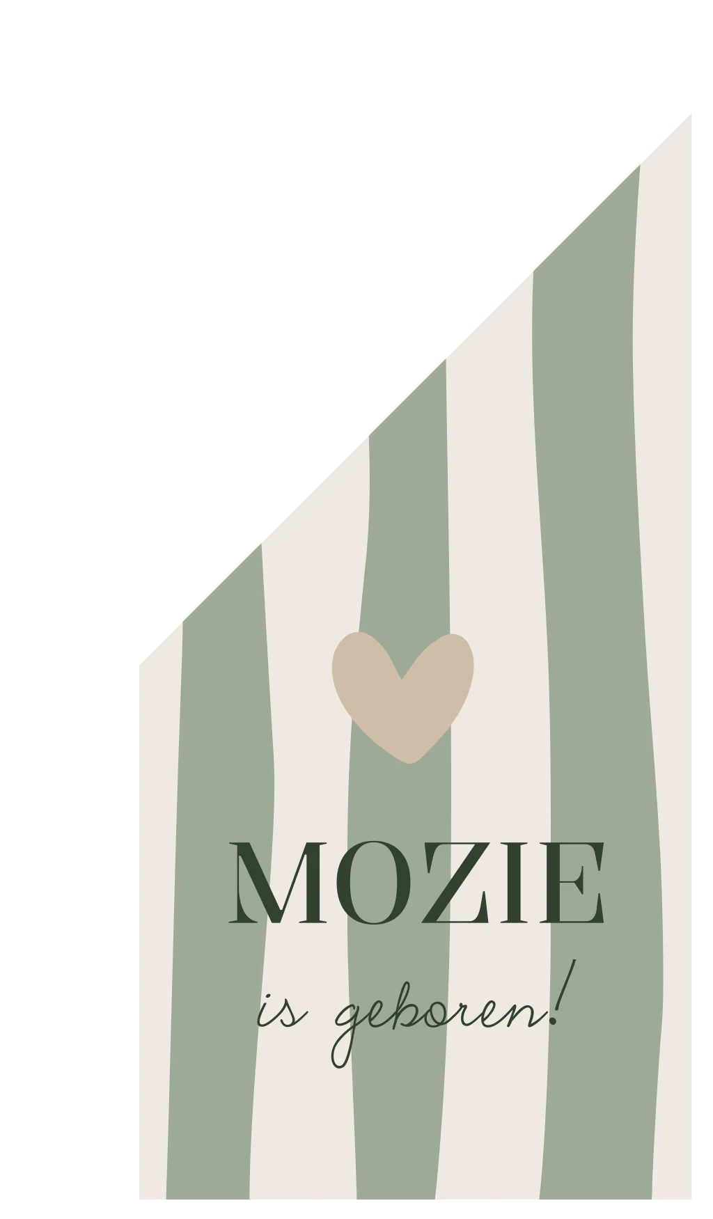 Een prachtig beige/groen/donkergroen gestreepte vlag Mozie met een hartje. Je kunt alle kleuren eenvoudig aanpassen naar je eigen kleurwensen. Heb je onze hulp erbij nodig? Laat het gerust weten!