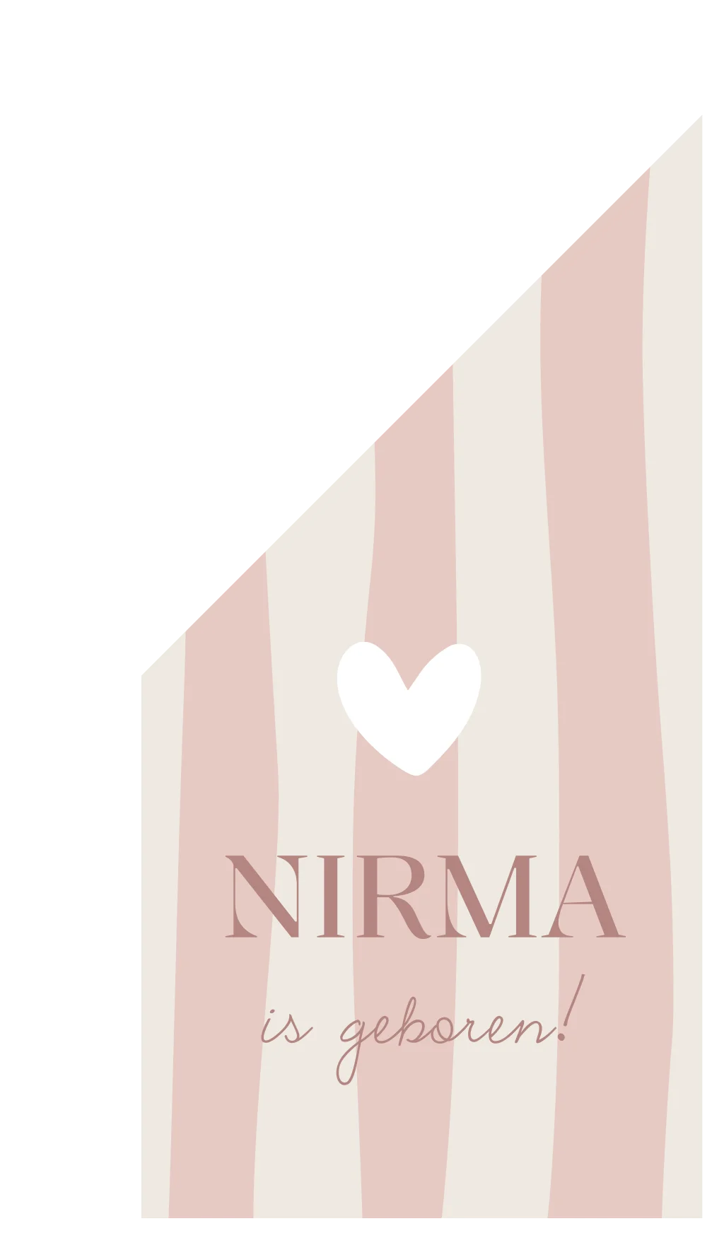 Een prachtig beige/roze gestreepte vlag Nirma met een hartje. Je kunt alle kleuren eenvoudig aanpassen naar je eigen kleurwensen. Heb je onze hulp erbij nodig? Laat het gerust weten!