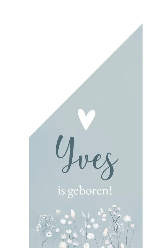 Een romantische vlag in een blauwe kleur. Op vlag Yves is een blauwe gewolkte achtergrond gecombineerd met een illustratie van witte droogbloemen. Je past hem helemaal zelf aan naar jouw wensen, in onze online editor.