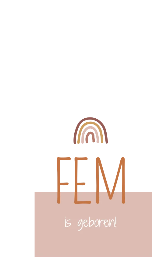 Een roze/ witte vlag die je aan de voorgevel van je huis kunt ophangen om de buurt te vertellen dat je dochtertje is geboren! De vlag Fem bevat een regenboogje in diverse kleuren. Je past het ontwerp eenvoudig aan in de online editor.
