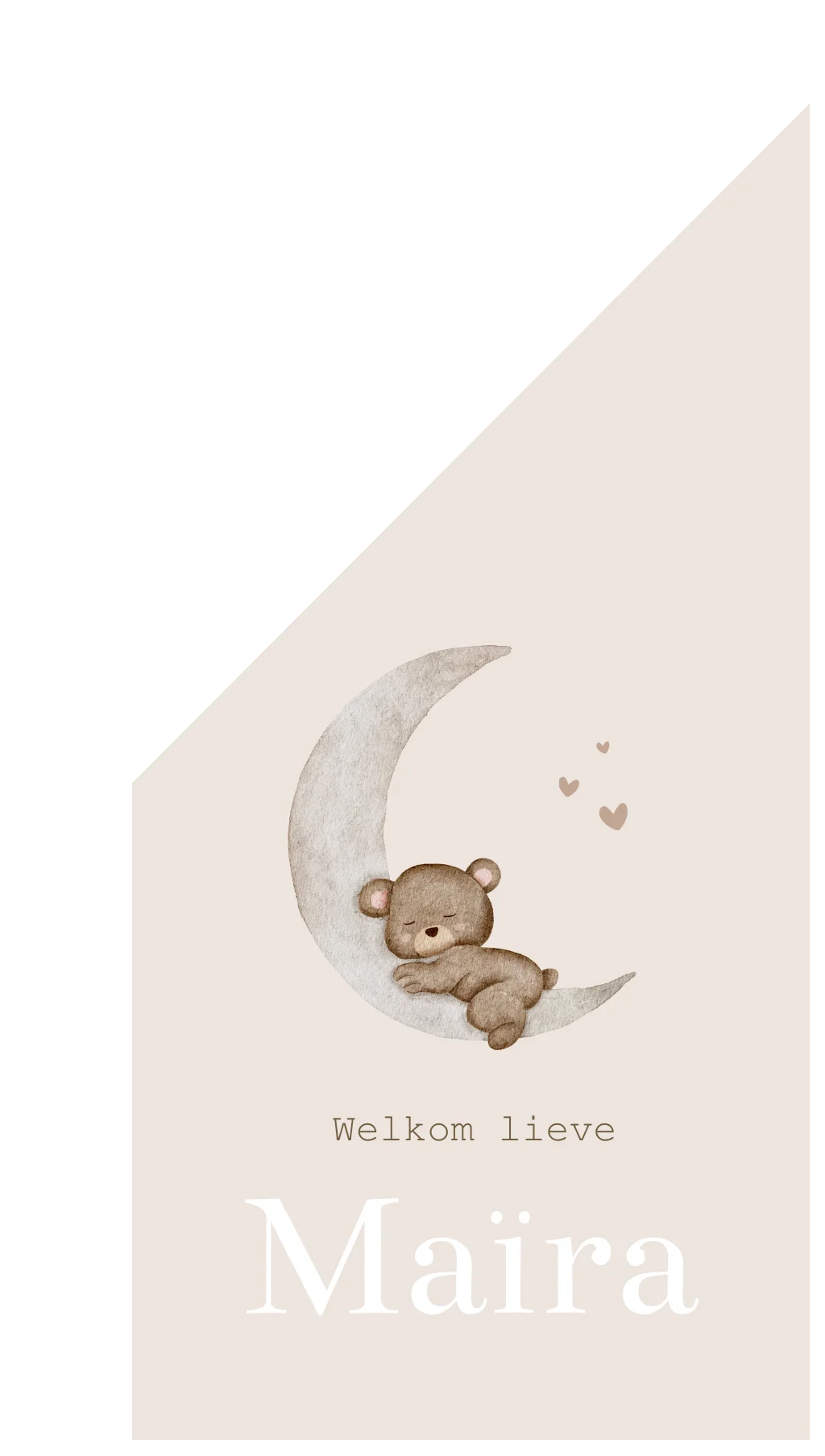 Lief, zacht roze vlag aan de vlaggenmast voor aan de gevel van je huis met een slapend teddy beertje op een watercolor hartje. Op geboortevlag Maïra kun je de illustratie aanpassen naar jouw wensen. In de beeldbank vind je veel mooie tekeningen waar je uit kunt kiezen. Wil je dit tuinbord liever in een ander kleur? Pas de kleur naar eigen wens aan in de editor.