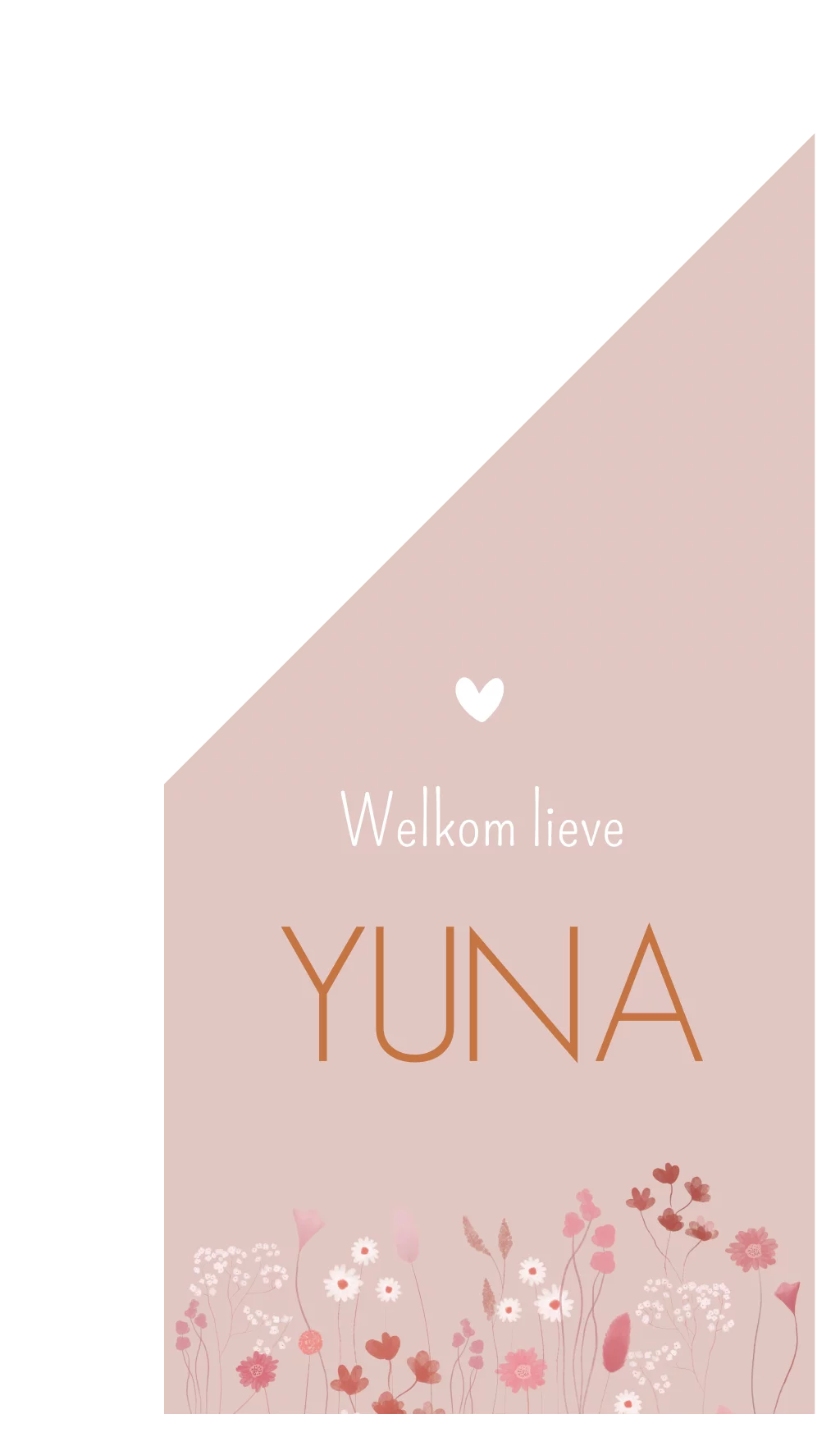 Gebloemde geboortevlag met hartje. Je past de vlag helemaal zelf aan binnen enkele minuten in onze online editor!