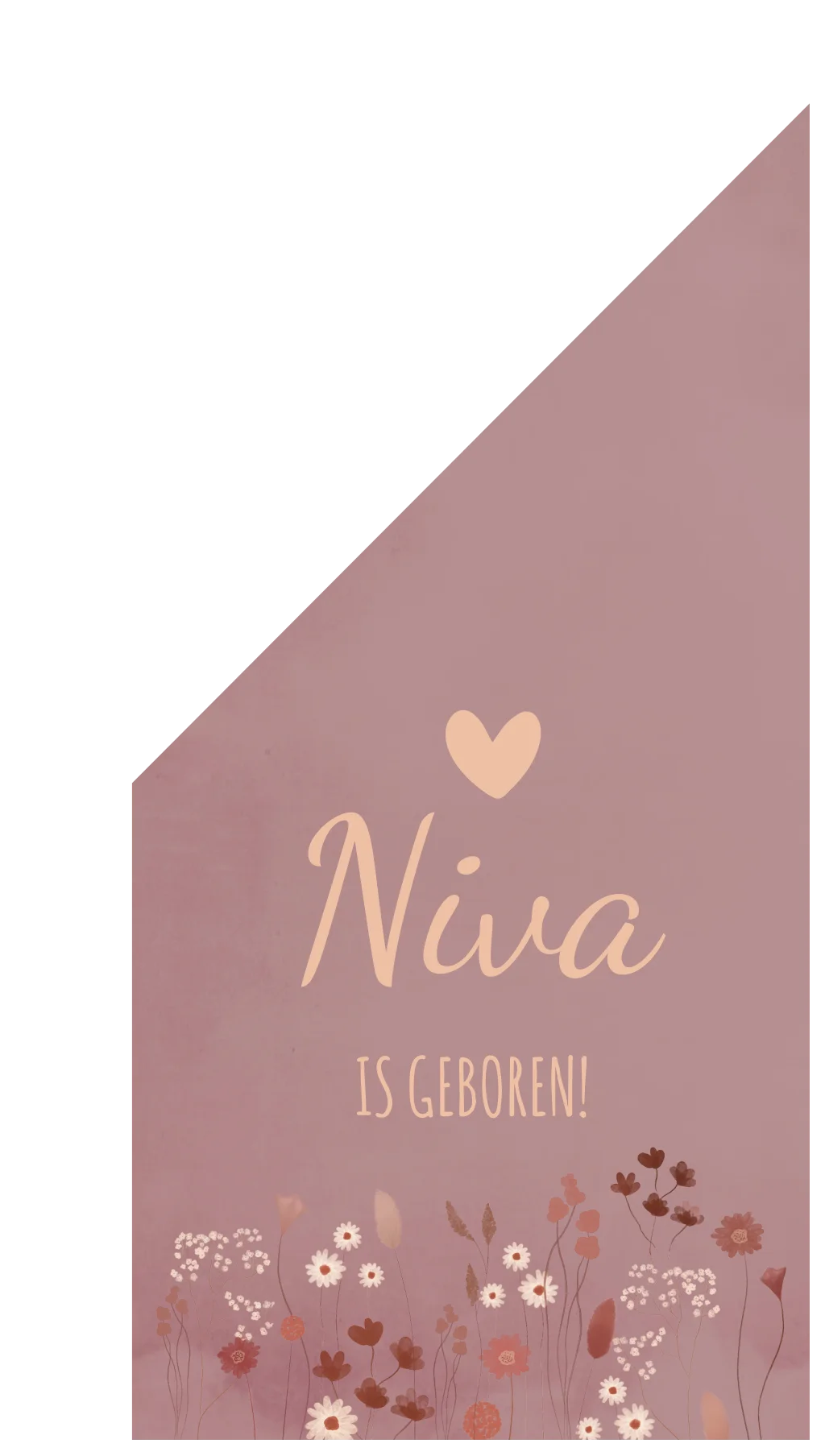 Een lief roze vlag met een getekend bloemenveld van droogbloemen. Vlag Niva is door de roze kleur extra schattig. Je kunt de vlag volledig zelf aanpassen naar jouw wensen. Kom je er niet uit? App of mail ons dan, we helpen je zsm!