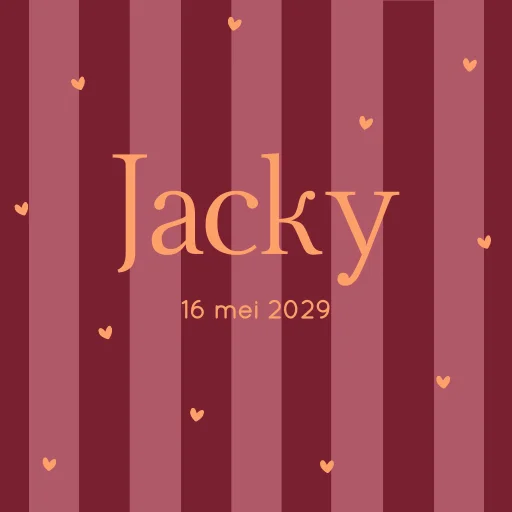 Een vrolijk gestreept geboortetegeltje. Pas tegel Jacky eenvoudig naar eigen wens aan in de editor.