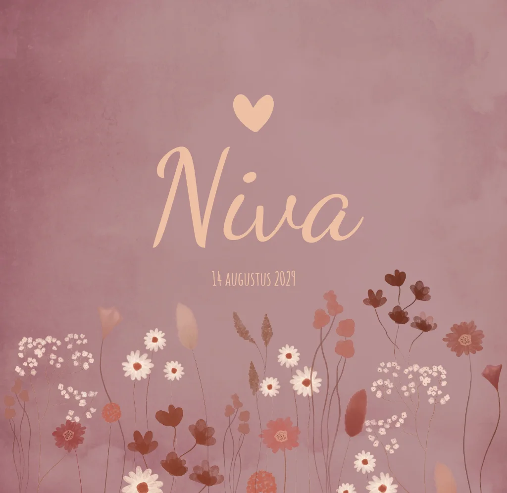 Een vrolijk geboortegeltje met bloemen. Pas ontwerp Niva naar eigen wens aan in de editor.Specificaties geboortetegel
