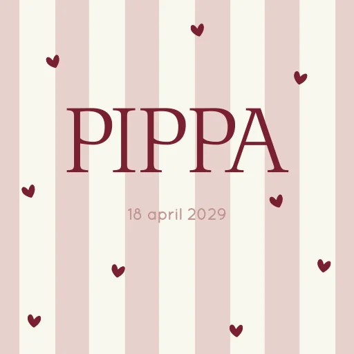 Geboortetegel met streepjes en hartjes. Tegel Pippa is naar eigen wens aan te passen in de editor.