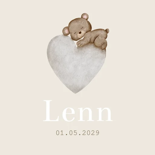 Een tegeltje met een opdruk van een slapend teddy beertje op een hartje in waterverf stijl. Specificaties geboortetegel