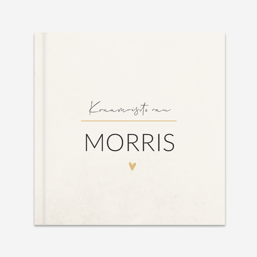 Een stoer en neutraal kraambezoekboek met een gewolkte achtergrond. Je past de cover van het kraambezoekboek Morris gemakkelijk zelf aan. Het boek bevat 60 invulpagina's en een plekje voor het geboortekaartje.