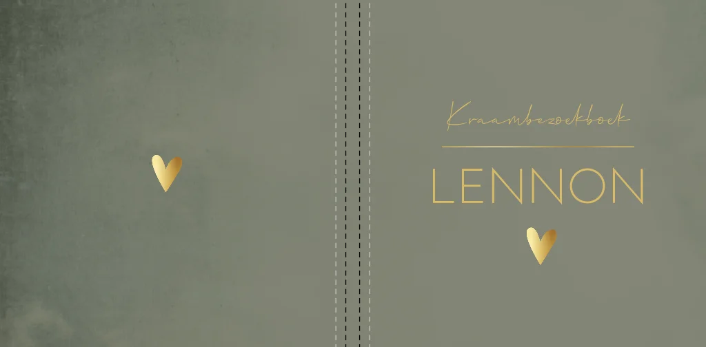 Stoer donkergroen gewolkte kleur kraambezoekboek Lennon met en een goudkleurig hartje.