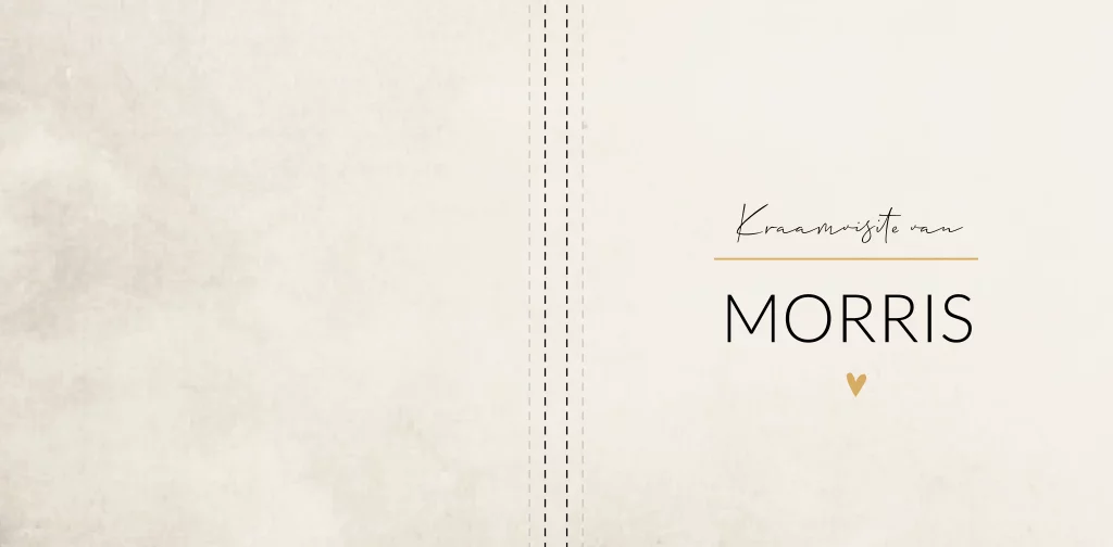 Een stoer en neutraal kraambezoekboek met een gewolkte achtergrond. Je past de cover van het kraambezoekboek Morris gemakkelijk zelf aan. Het boek bevat 60 invulpagina's en een plekje voor het geboortekaartje.