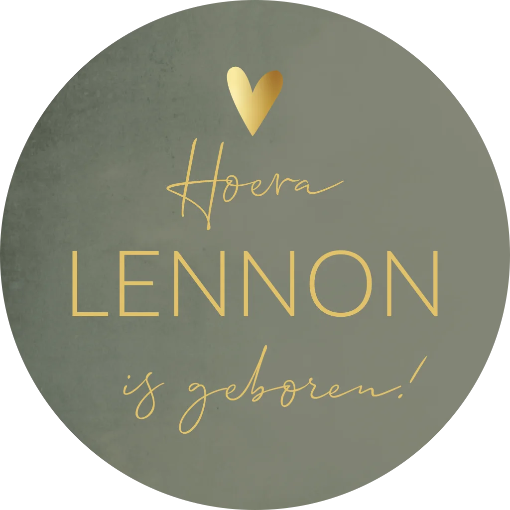 Groen gewolkte ronde sticker Lennon met een goud kleurig hartje. De naam en verdere tekst is in goud gele kleur, deze kun je volledig zelf aanpassen. Ook de achtergrond kun je helemaal zelf aanpassen in de editor. Afmeting: 60Ø