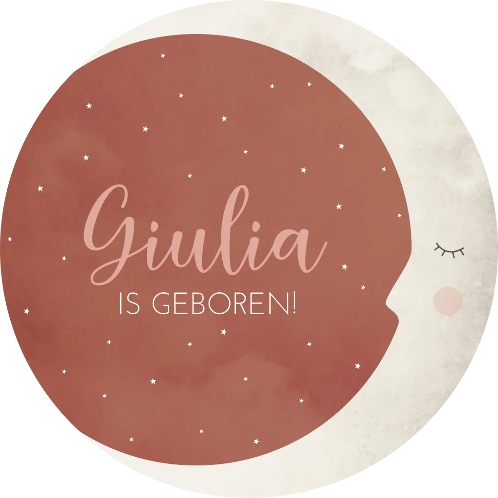 Raamsticker Giulia is een schattig warm roze trendy raamsticker met een beige maantje met een gezichtje. Door de maan en de sterretjes waan je je in het heelal.