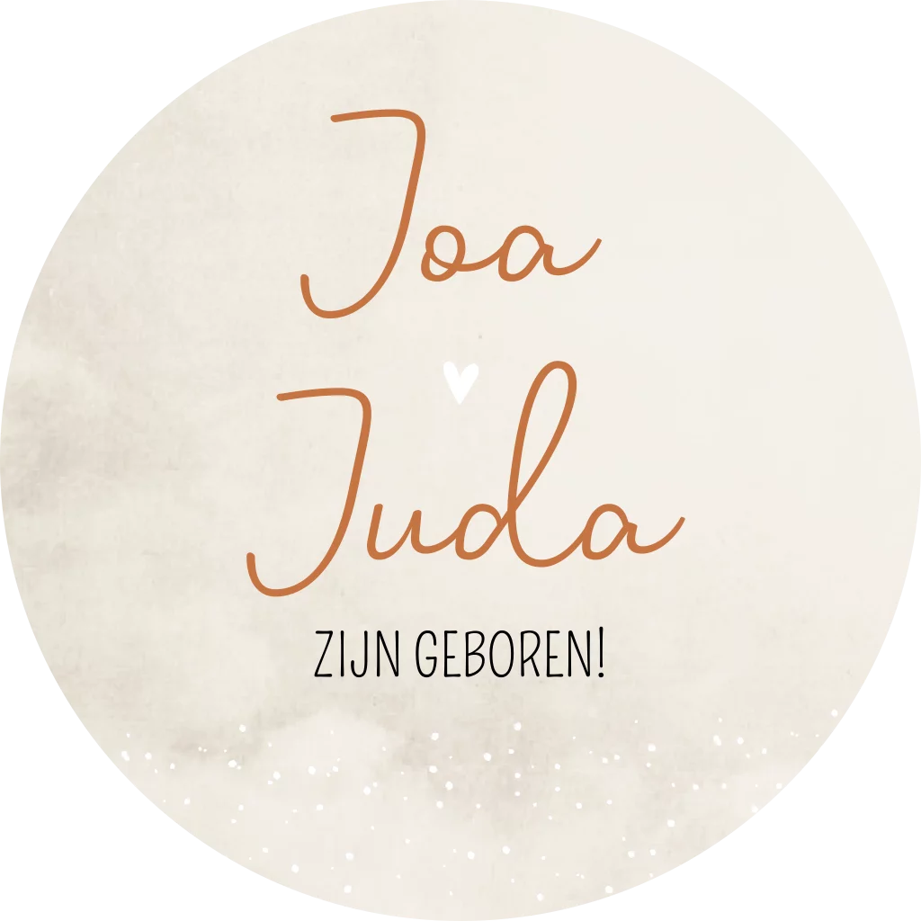 Stoer en neutraal beige/ creme sticker voor op het raam voor een tweeling. Raamsticker Joa en Juda kun je helemaal zelf aanpassen naar jouw wensen. Ook leuk om cadeau te geven als familie!