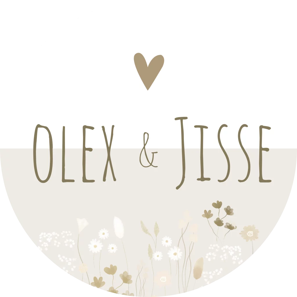Een lief ontwerp met een getekend bloemenveld met droogbloemen. De raamsticker heeft een beige onderzijde en een witte bovenzijde. Zo wordt het ontwerp wat stoerder. Wil je graag iets aanpassen aan raamsticker Olex en Jisse? Neem dan een kijkje in onze editor voor alle opties.