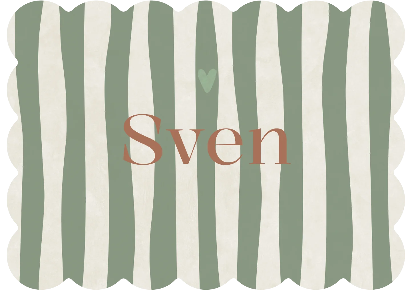Dit gestreepte geboortekaartje Sven heeft een unieke koekjes vorm. De zacht beige kleur met strepen in groene kleur maakt het geboortekaartje hip en stoer. De kleur pas je gemakkelijk aan in onze editor.
