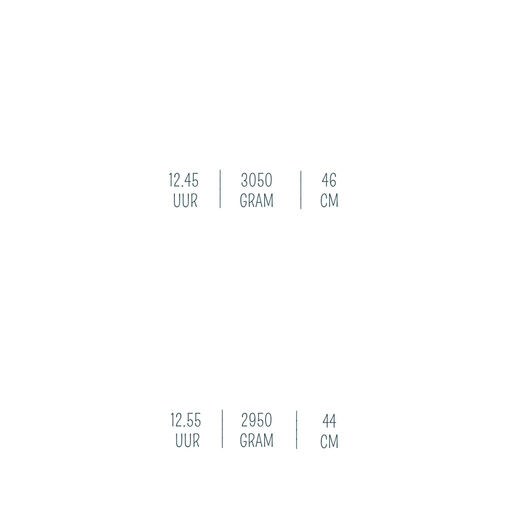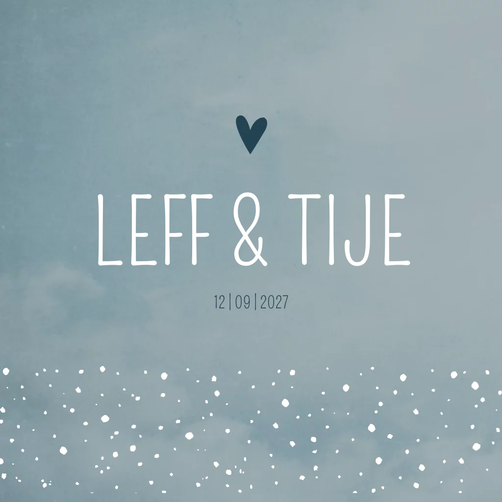 Blauw gewolkt geboortekaartje voor een tweeling, met stipjes en hartjes. Geboortekaartje Leff en Tije wordt extra mooi wanneer je het laat bedrukken met koperfolie. Pas het kaartje naar eigen smaak aan in de editor.