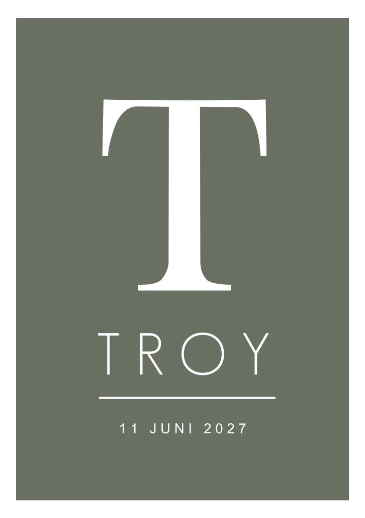Een stoer groen geboortekaartje. De gouden folie laat de details en naam van kaartje Troy er echt uitspringen!