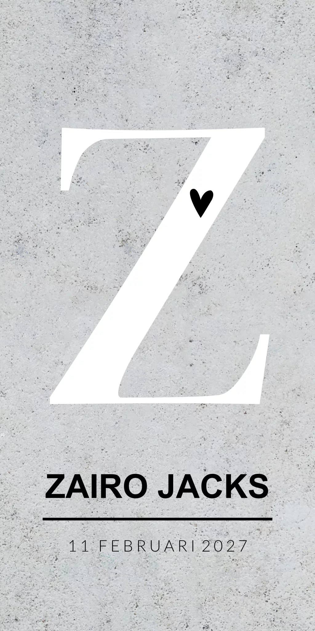 Een grijs/ zwart/ wit geboortekaartje met de naam Zairo en een beton look achtergrond. De grote initiaal maakt het tot een stoere letterkaart!