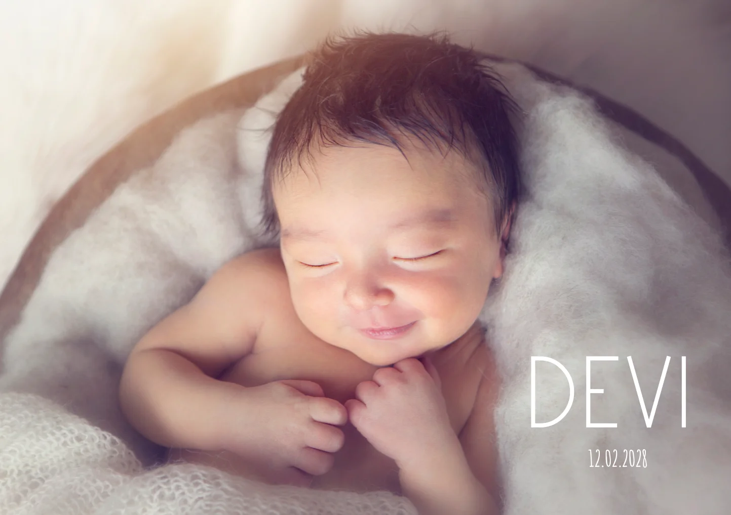 Chique en neutraal geboortekaartje voor zowel een jongen als een meisje. Jouw foto maakt de kaart. Je kunt zelf de positie van de naam bepalen en zo ook het lettertype. De achterzijde is ook volledig aanpasbaar. Heb je onze hulp nodig bij het bewerken van je foto? Stuur ons een mailtje en we antwoorden je zsm zodat je kaartjes gauw gedrukt kunnen worden.